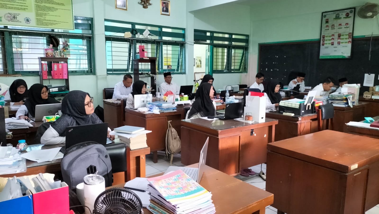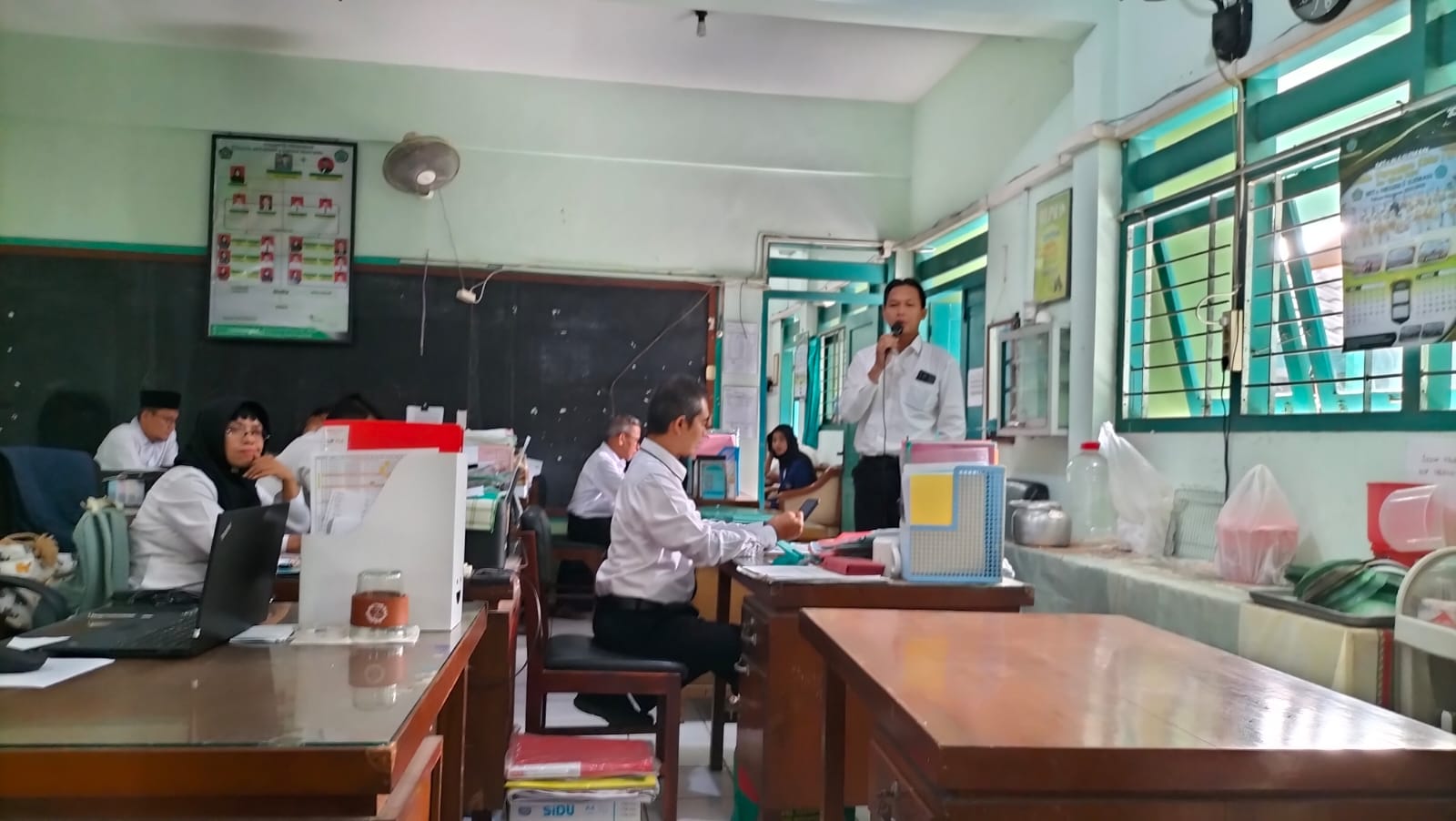 Kankemenag Sleman News (MTsN 6 Sleman)- Tahun ajaran 2024/2025 memasuki minggu kedua. MTsN 6 Sleman sudah memulai kegiatan belajar mengajar secara efektif. Pada Senin (22/7/2024) sebelum memulai aktivitas, Kepala MTsN 6 Sleman mengadakan briefing di ruang guru. “Kegiatan KBM mulai hari ini kita mulai secara efektif. Diharapkan Bapak/Ibu guru semua mengondisikan secara kondusif termasuk pada rutinitas tadarus pagi mari dimulai kembali,” imbau Jazim Kholis, Kepala MTsN 6 Sleman.