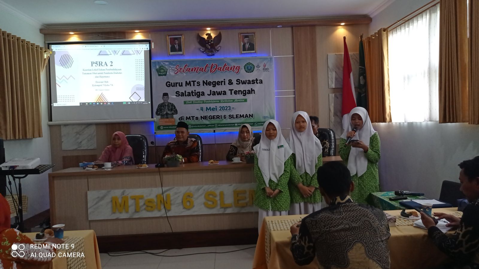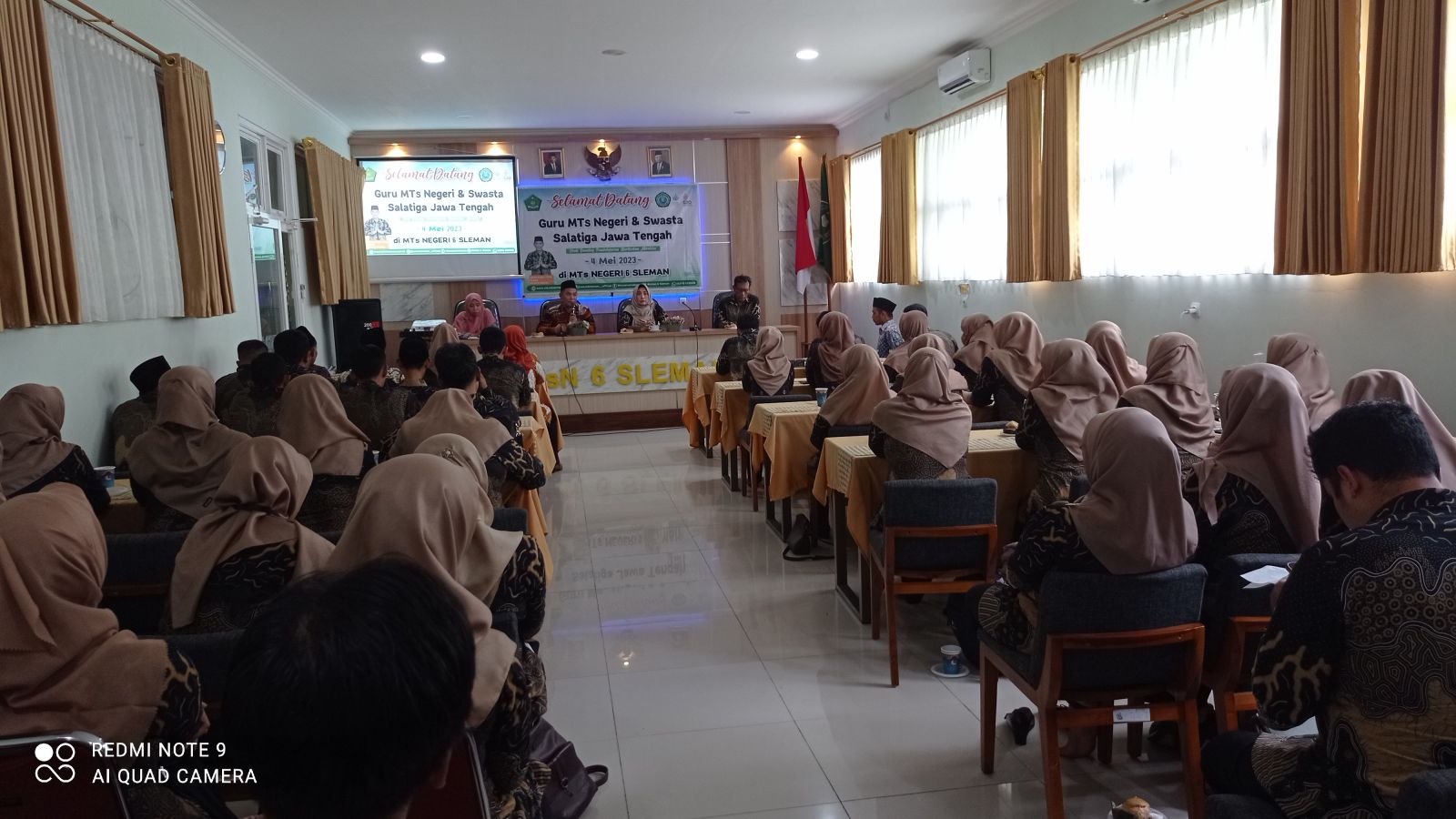Sleman (MTsN 6 Sleman)--Kunjungan studi tiru Guru guru MTs Negeri dan Swasta pada hari Kamis (4/5) di MTsN 6 Sleman diwarnai dengan tampilnya pemaparan P5 RA (Proyek Penguatan Profil Pelajar Pancasila dan Rahmatan Lil alamin) oleh Nur Setyawati Suharto dan tim. Dalam pemaparannya menyajikan P5RA yang telah dilakukan tim.